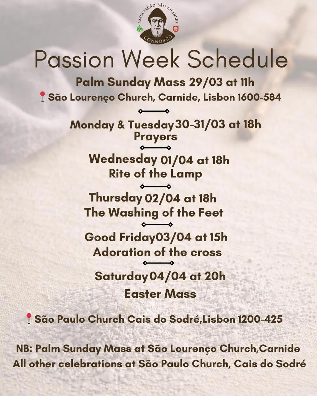 Passion Week Schedule - São Charbel Connosco